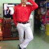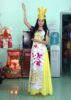 Gồm áo dài Âu Lạc cổ yếm màu đỏ, váy đụp dài và nón.