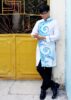 Áo dài cách tân nam trắng vẽ kim tuyến xanh