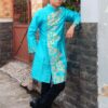 Áo dài cách tân nam vẽ kim tuyến xanh dương