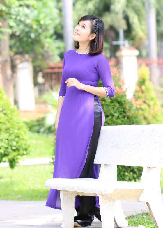 Áo dài chiffon tím Huế kết ngọc