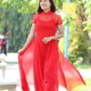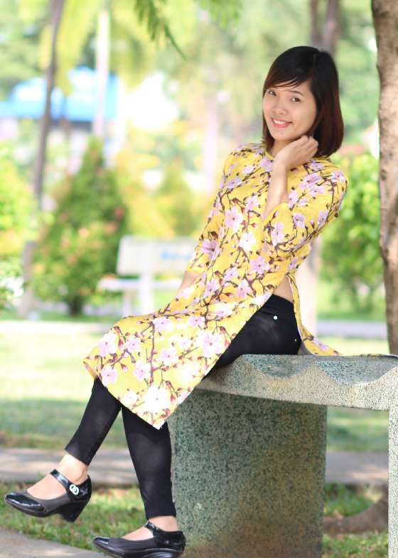 Áo dài gấm lụa vàng hoa đào