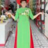 Bộ gồm áo dài, chân váy xòe/ quần váy, mấn nữ nhân hoặc cài ngọc trai.