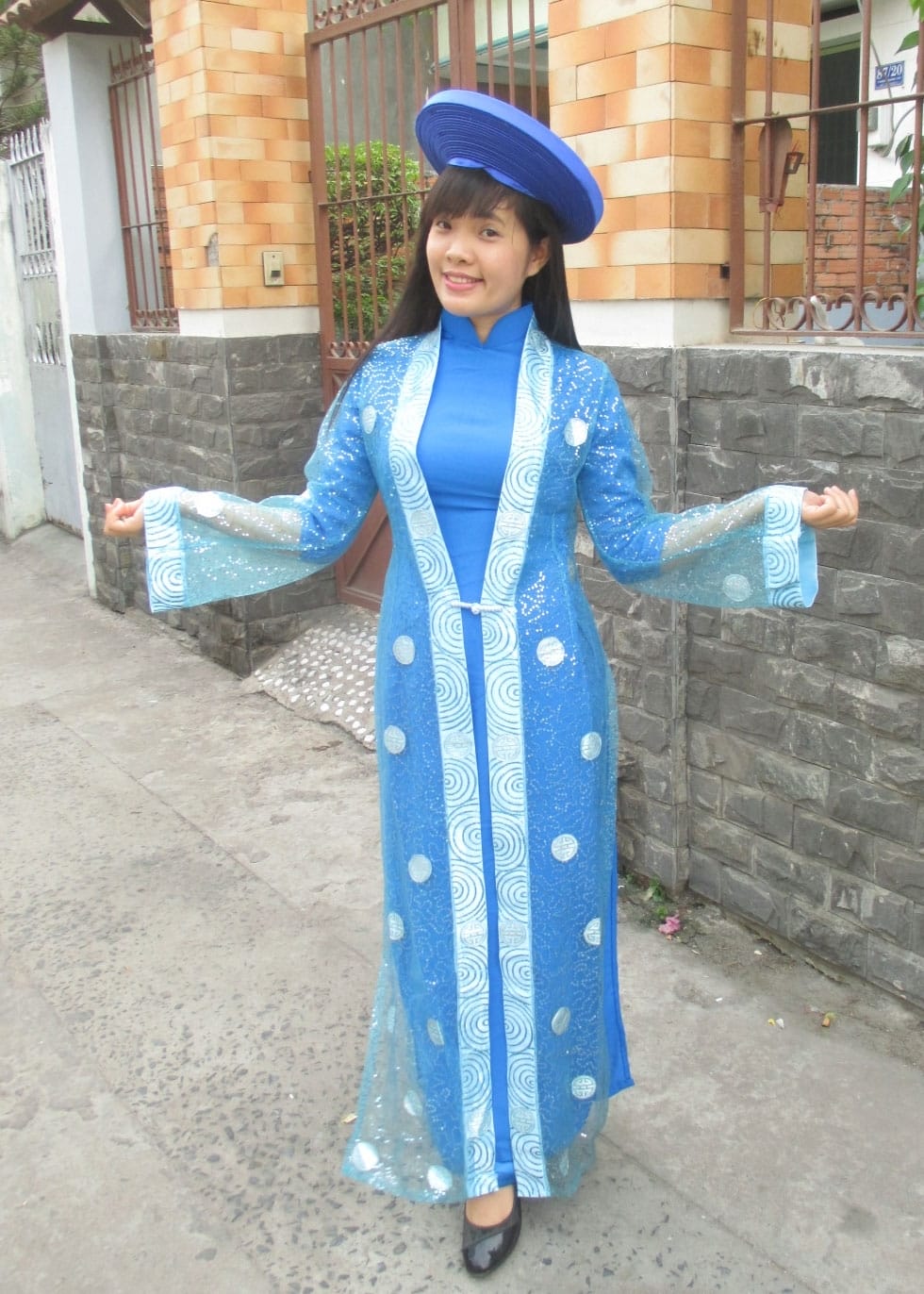 Áo dài hoàng hậu màu xanh biển