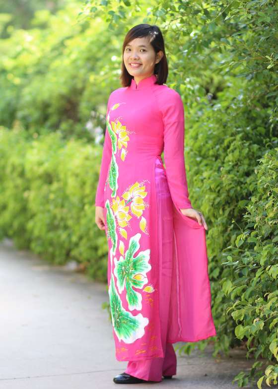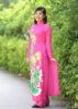 Áo dài hồng vẽ sen kim tuyến