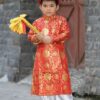 Áo dài nam gấm bông sen trẻ em màu xanh lá