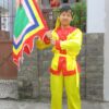 Áo dài nam gấm đòng tiền màu đỏ