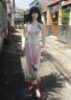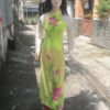 Áo dài trắng sen hồng tay ren