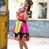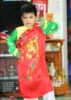 Áo dài trẻ em đỏ tay xanh lá vẽ hoa mai