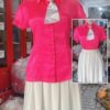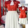 Áo sơ mi nữ đỏ tươi trơn váy xếp ly trắng