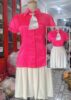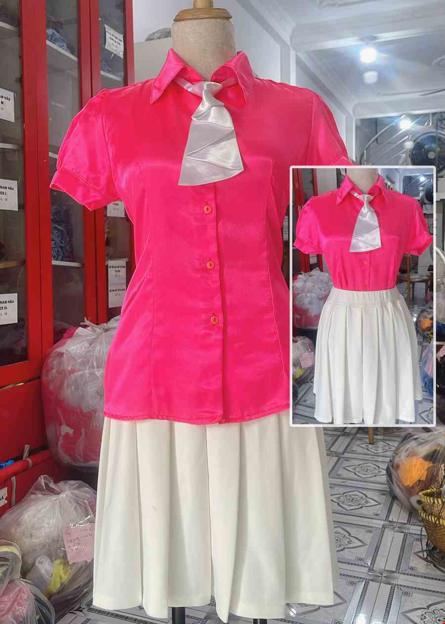 Áo sơ mi nữ hồng sen trơn váy xếp ly trắng