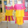 Áo váy múa cổ động trắng phối tím