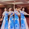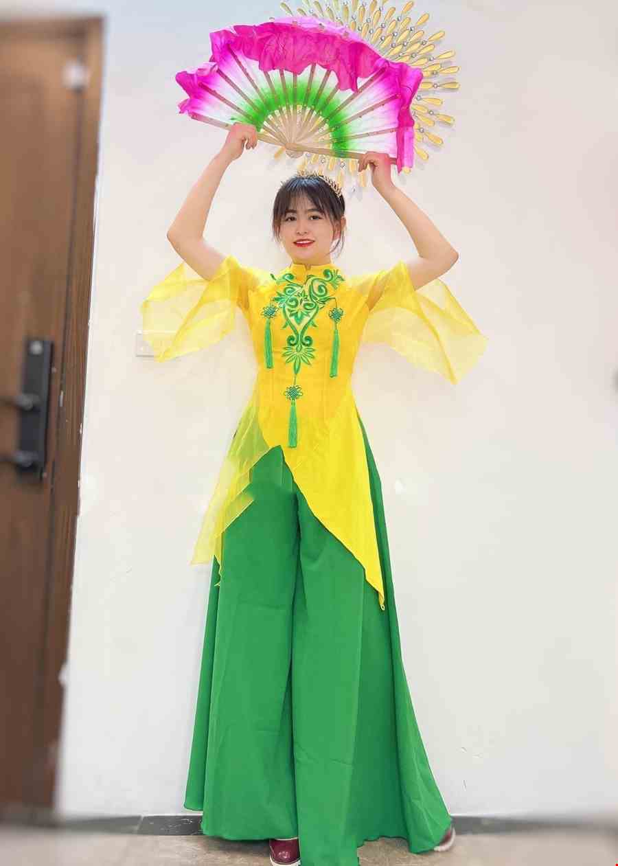 Áo váy múa đương đại tà xéo vàng xanh lá
