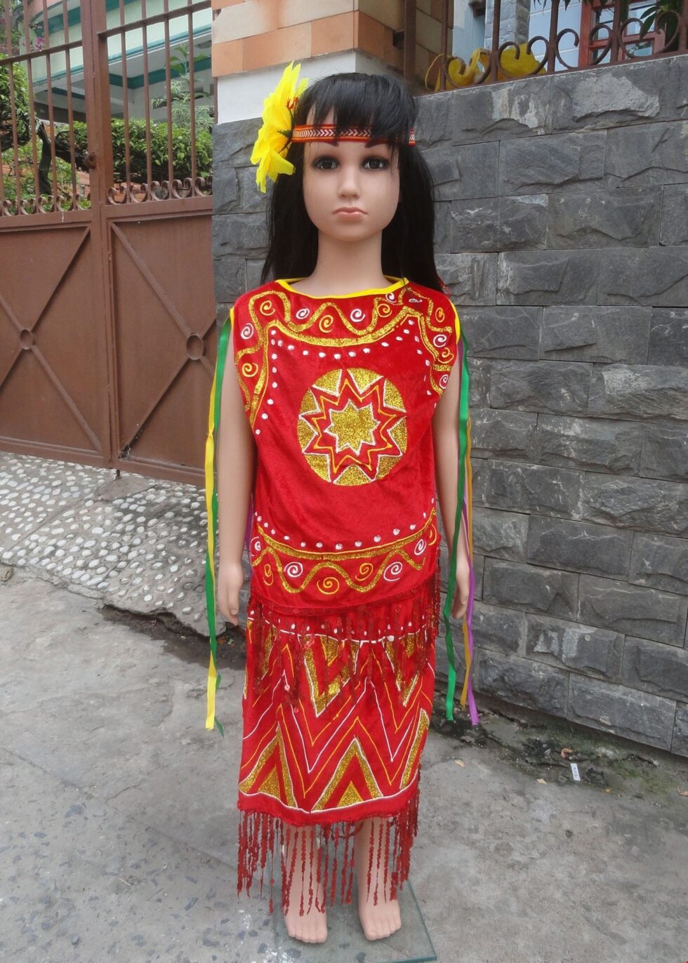 Áo Váy Tây Nguyên mầm non nhung đỏ sát nách