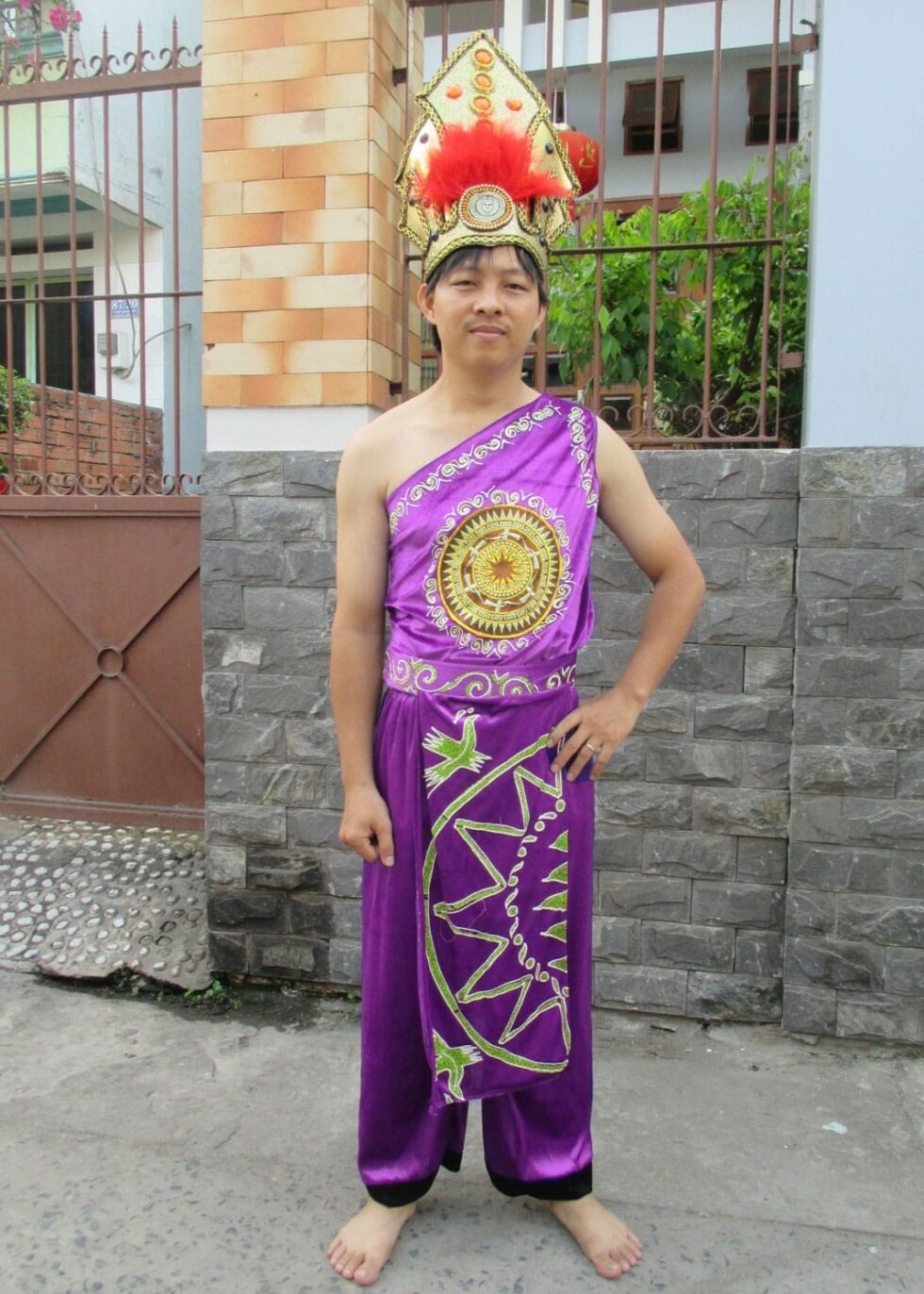 Âu Lạc nam nhung tím chéo vai đai 2 tà