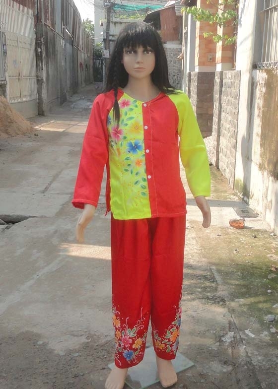 Bà ba tiểu học đỏ – vàng vẽ hoa