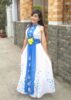 Đầm hiện đại trắng – xanh dương hoa dán