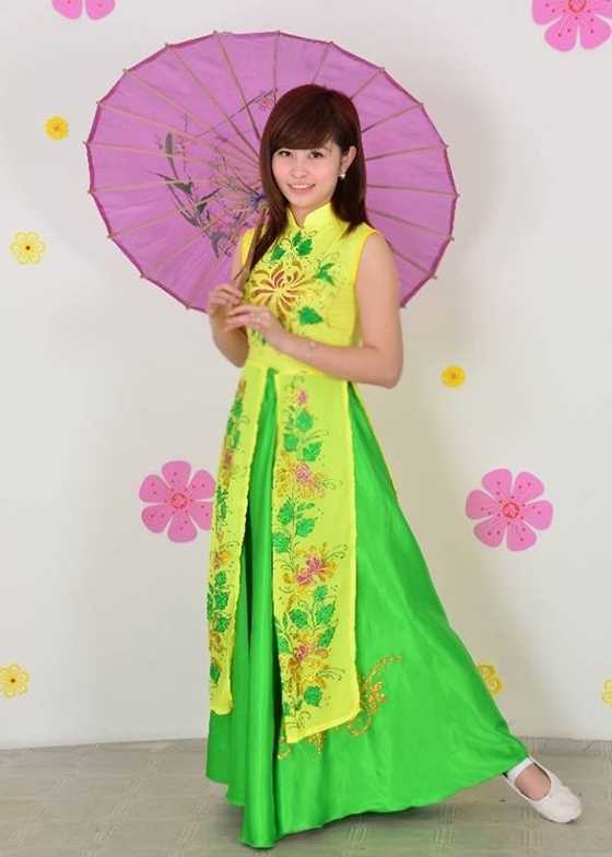 Đầm múa 3 tà hoa cúc