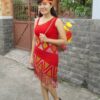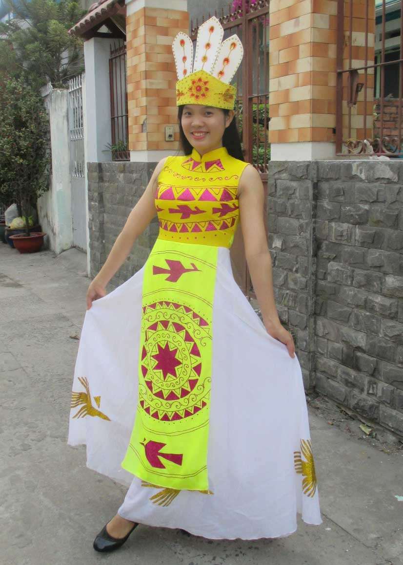 Đầm múa Âu Lạc vàng váy trắng
