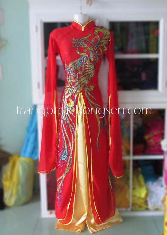 Đầm múa ba tà rồng phượng màu đỏ