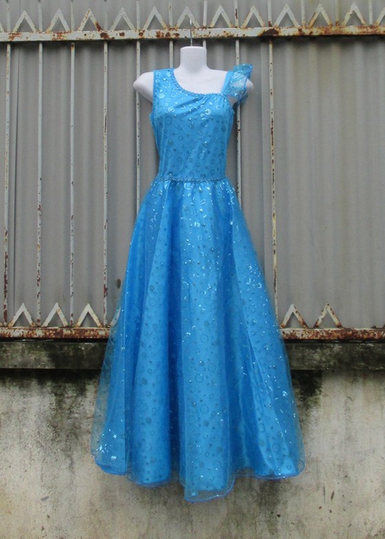 Đầm múa dài kim sa xanh