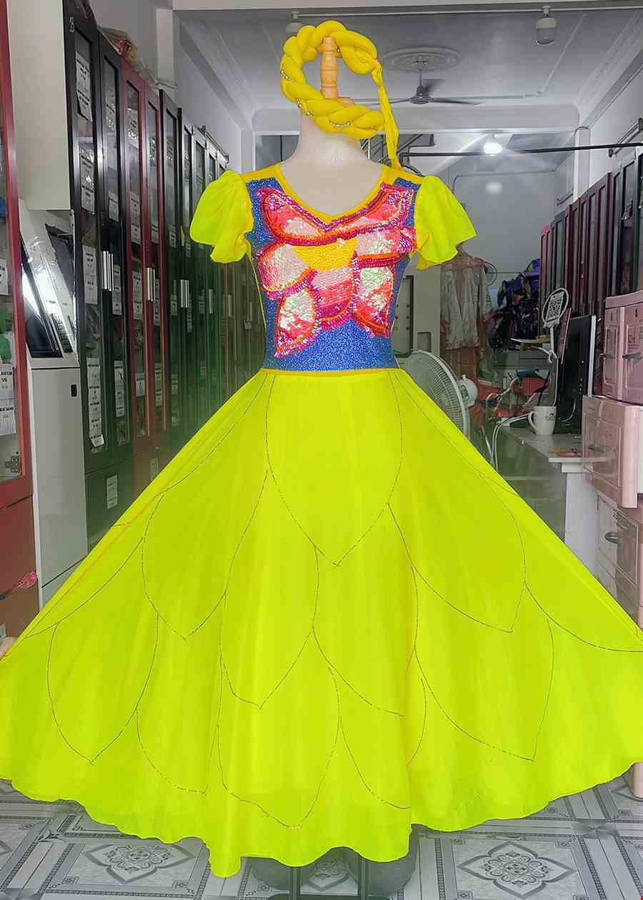 Đầm múa hát vàng kết kết kim sa ngực