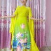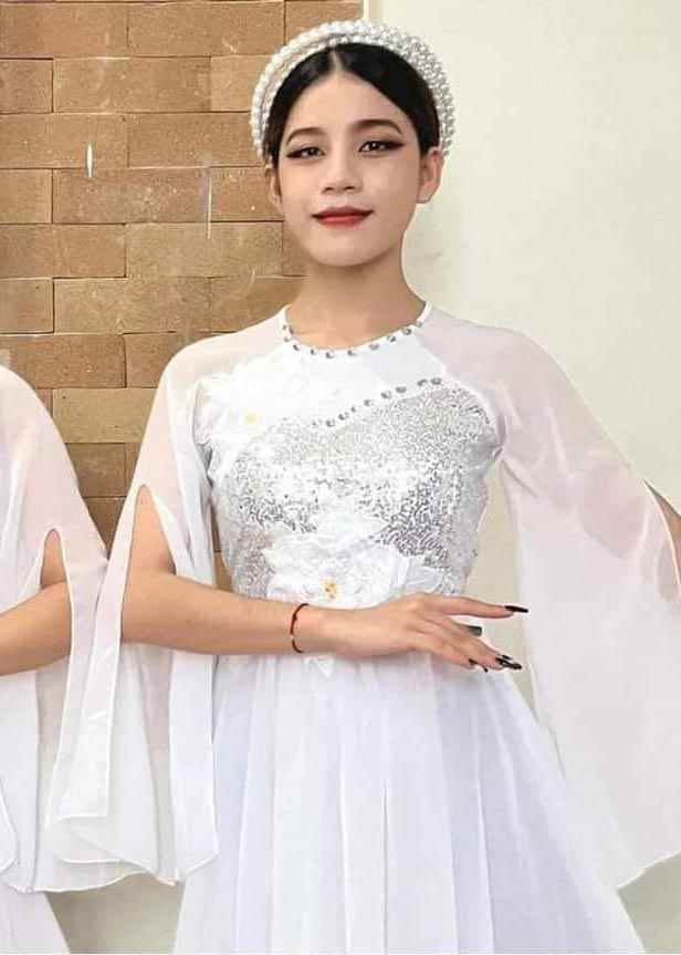 Đầm múa lụa trắng, hoa dán, tay cánh tiên
