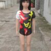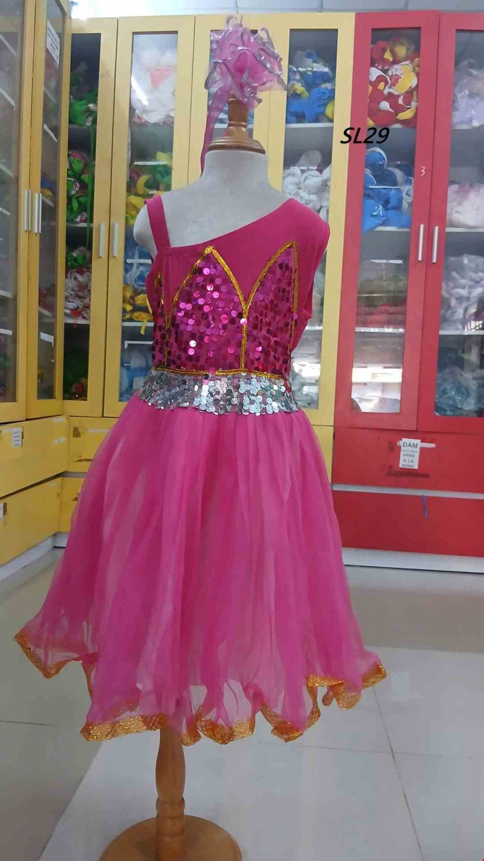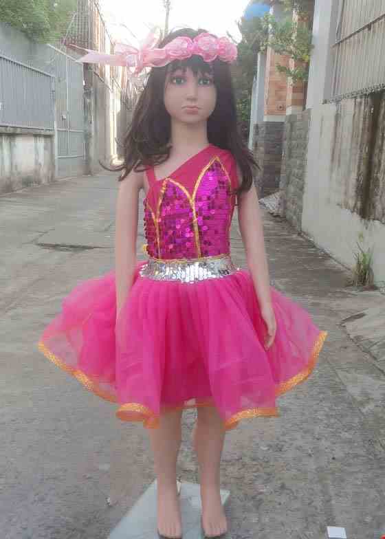 Đầm múa mầm non kim sa hồng ngực sen chéo vai