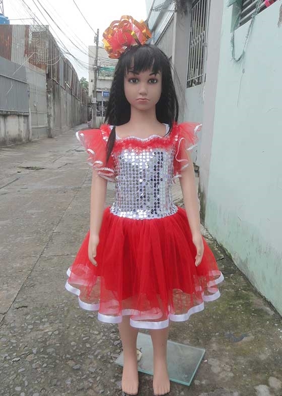 Đầm múa mầm non kim sa trắng váy đỏ