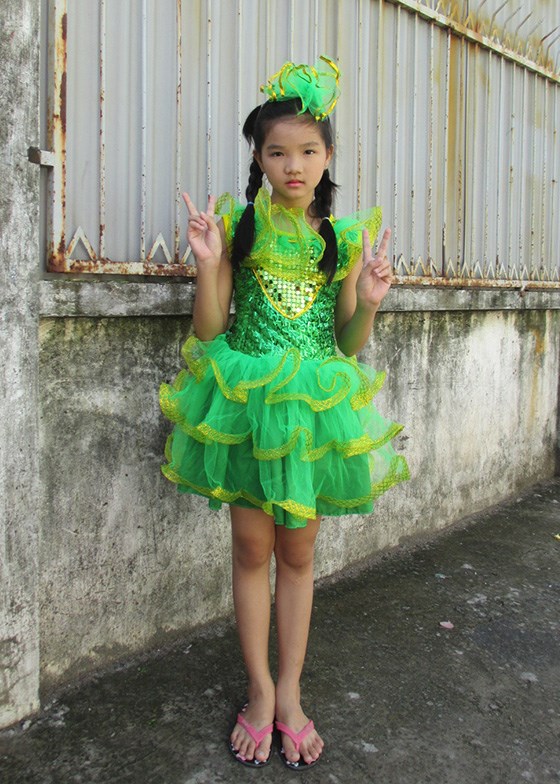 Đầm múa trẻ em kim sa 3 lớp màu xanh két
