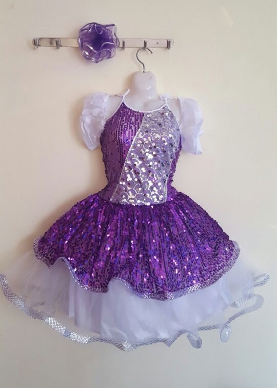 Đầm múa trẻ em kim sa tím tay phồng