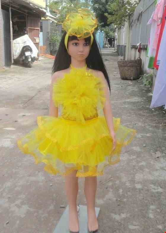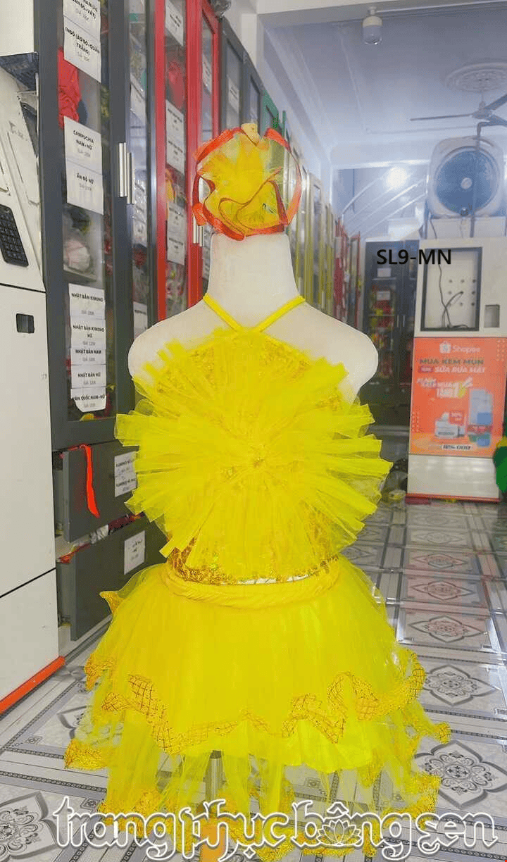 Đầm múa trẻ em kim sa vàng bông to -Áo váy mầm non