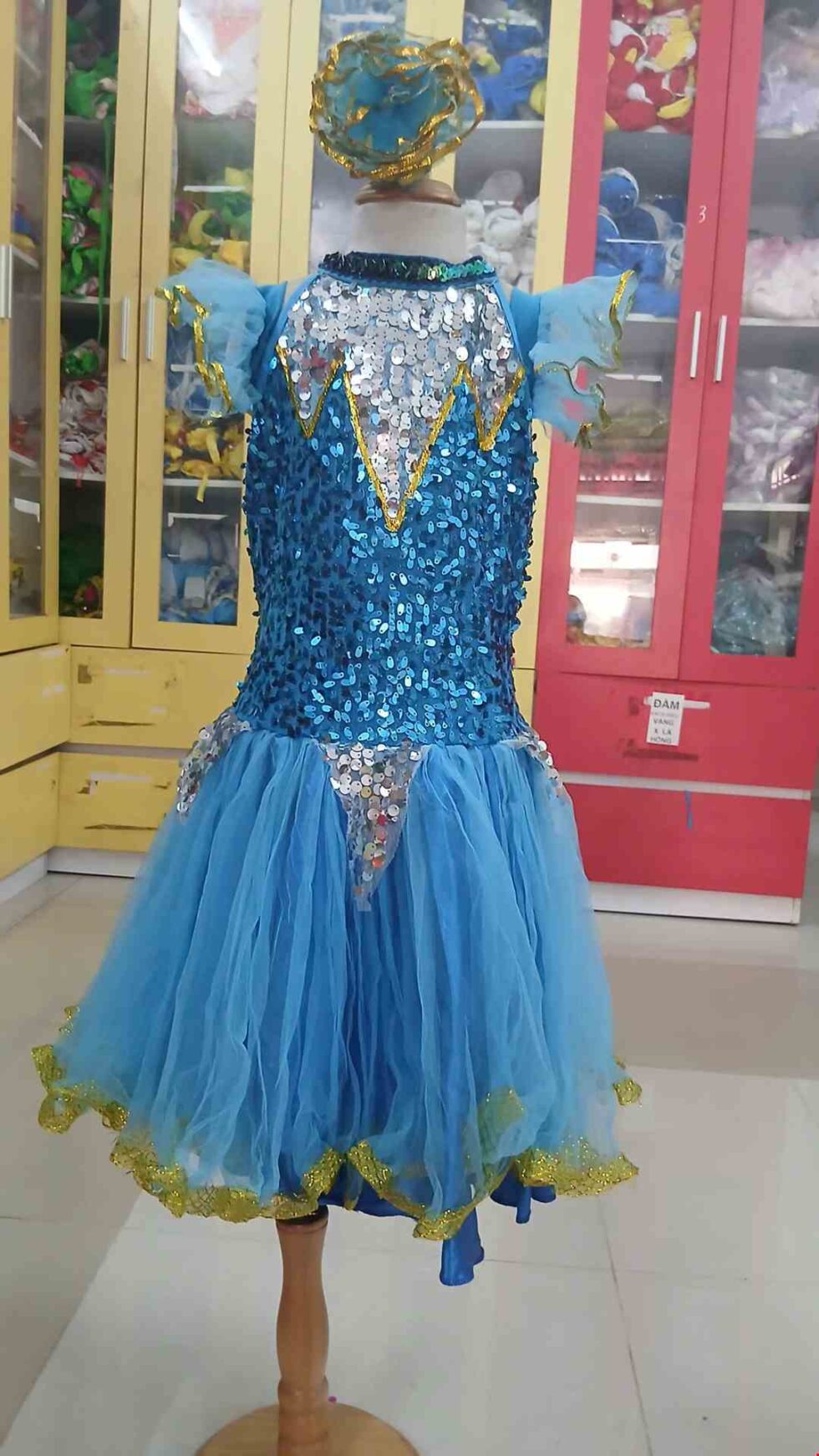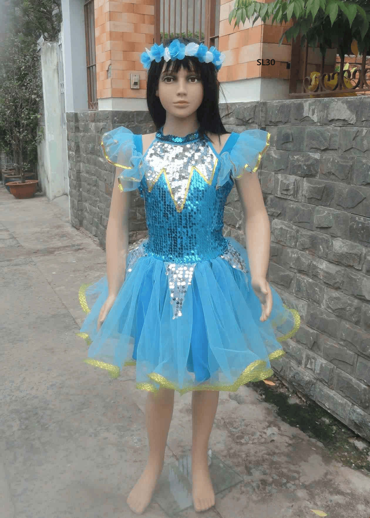 Đầm múa trẻ em kim sa xanh biển cổ trụ