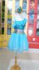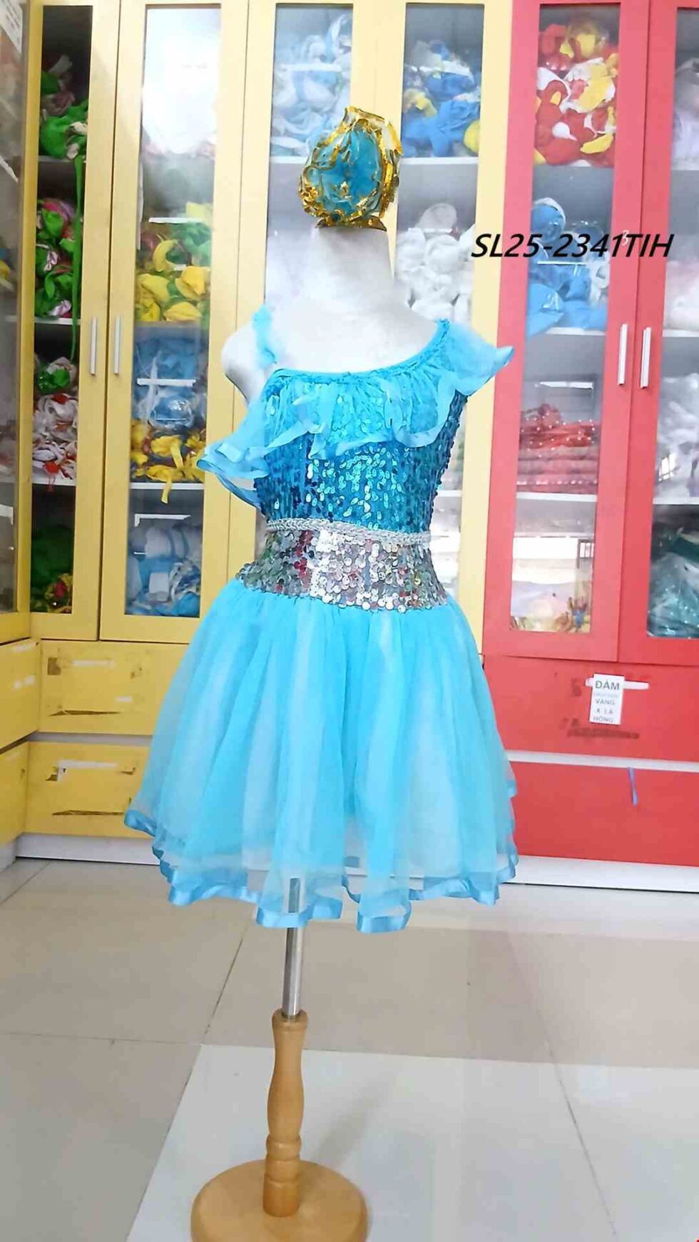 Đầm múa trẻ em kim sa xanh biển – trắng bèo chéo vai
