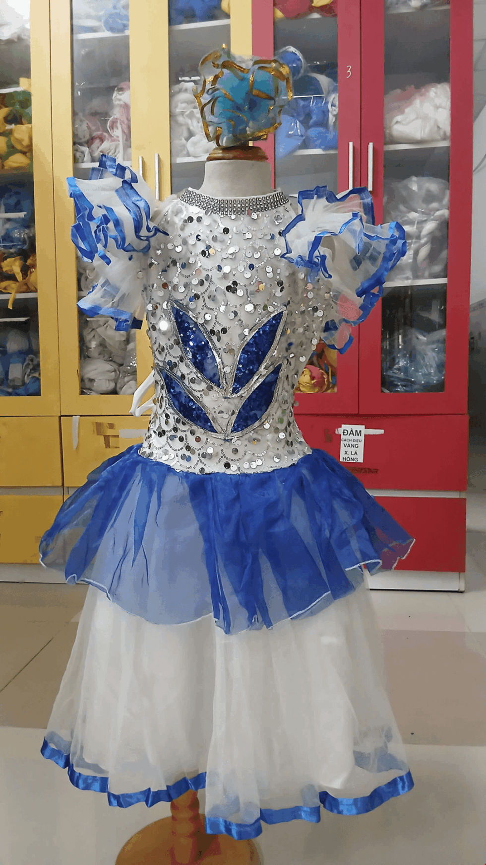Đầm múa trẻ em kim sa xanh dương