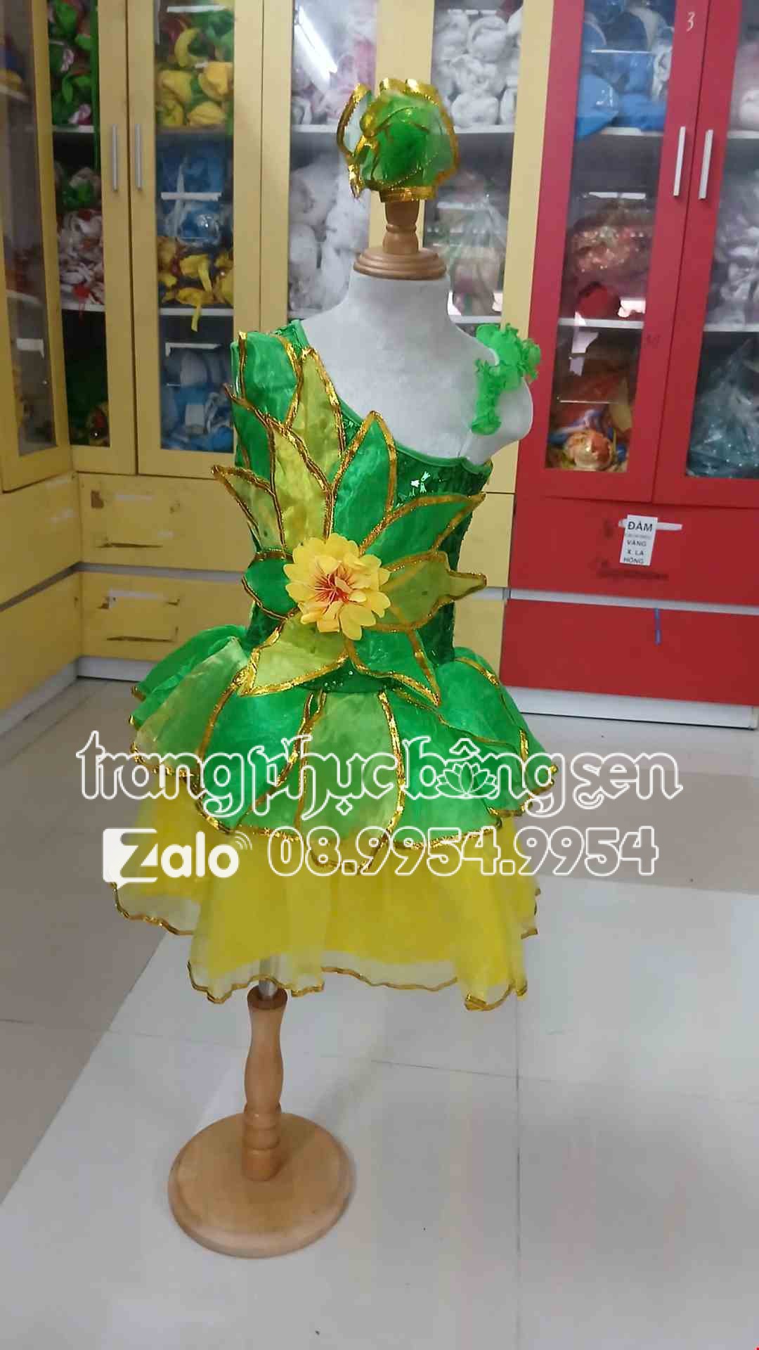 Đầm múa trẻ em xanh lá hoa mai – đầm bồng mầm non