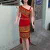 Đầm Tây Nguyên nữ nhung đỏ cổ tròn sát nách