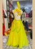 Đầm váy múa màu da ngực dán hoa váy lưới vàng nhiều cánh