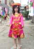 Dân tộc Mèo mầm non phi thun hồng cổ chữ V dán hoa