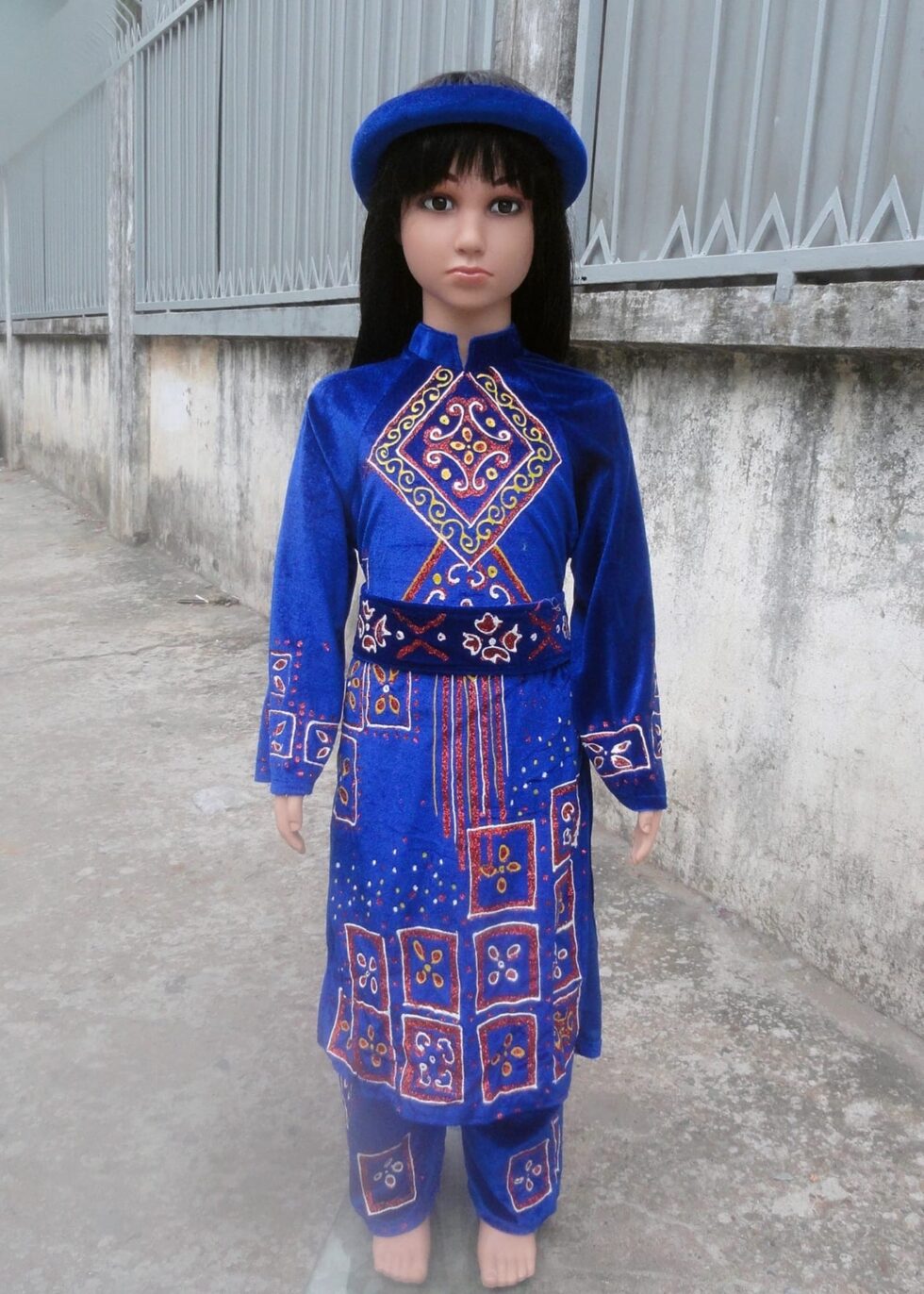 Dân tộc Tày mầm non nữ nhung xanh phun toàn thân