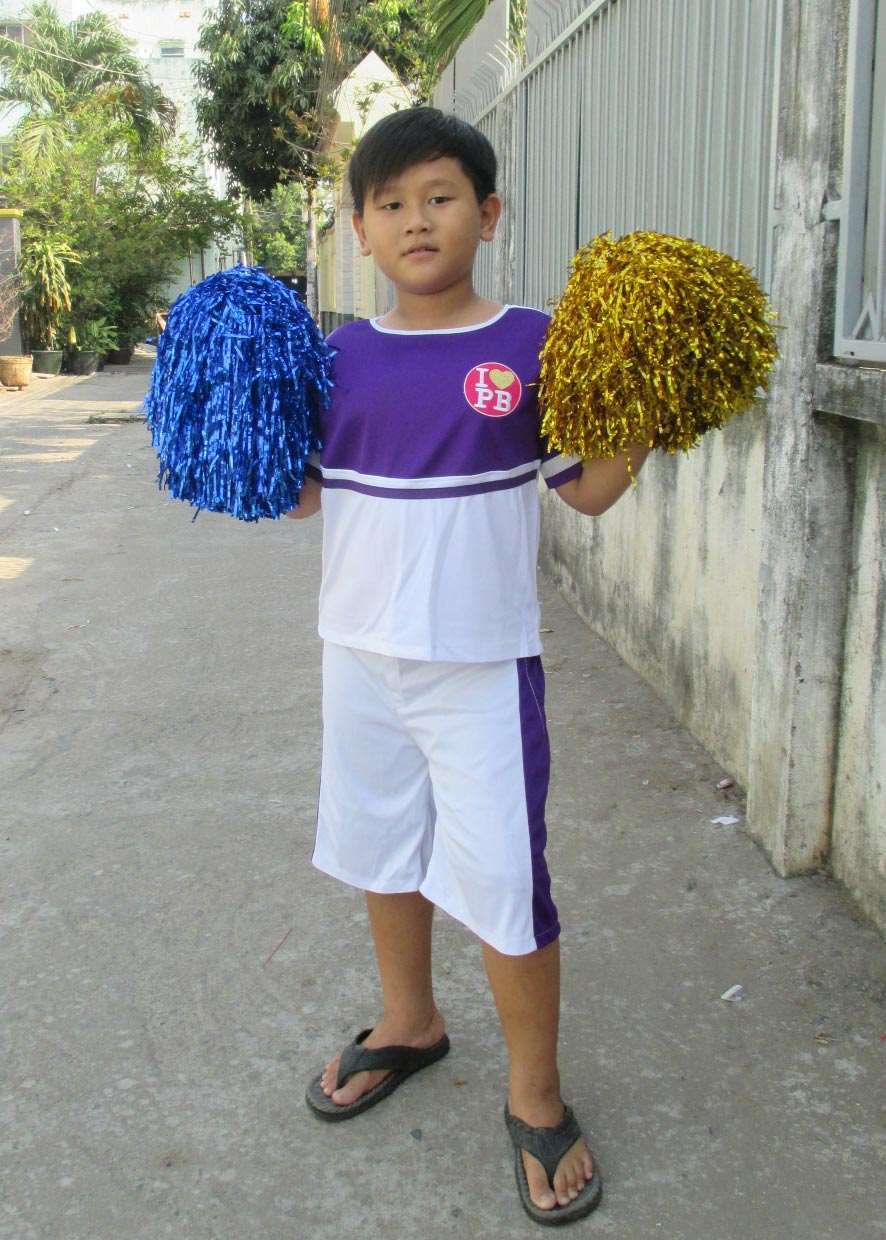 Đồ múa cổ động nam trắng phối tím