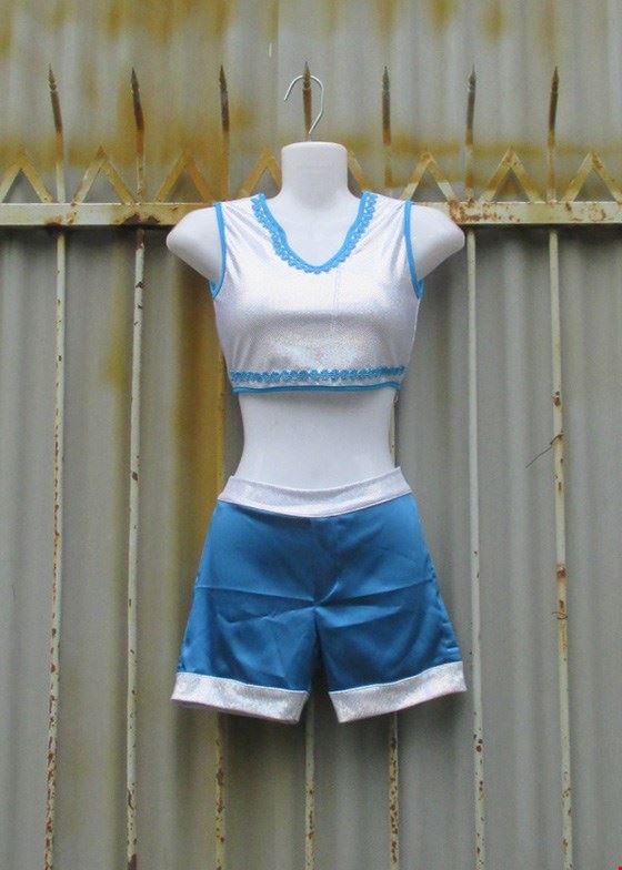 Đồ múa trẻ em quần xanh áo da cổ tròn