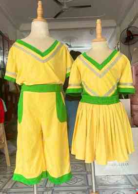 Đồ nhảy cổ động nam vàng phối xanh lá