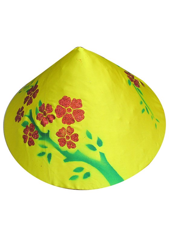 Nón lá nền vàng in cành hoa mai