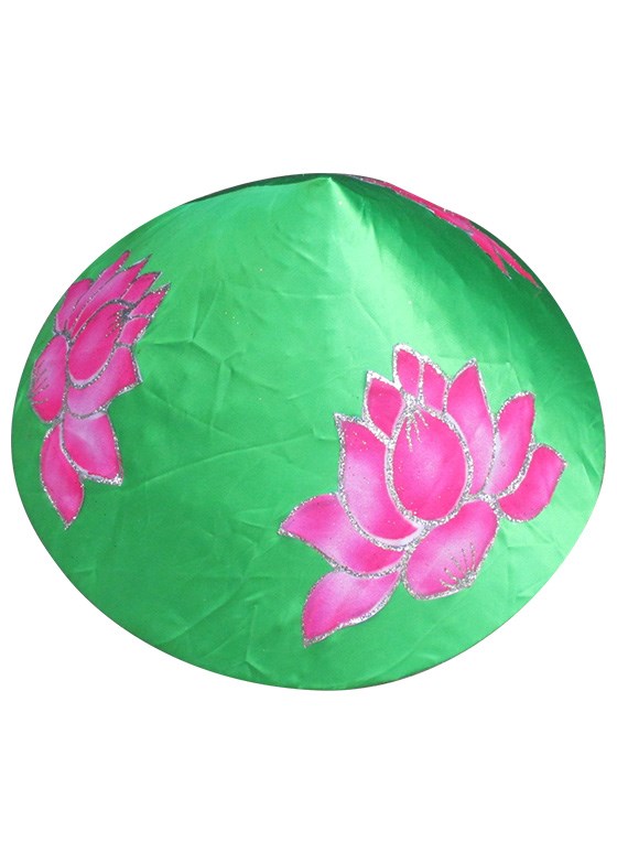 Nón lá nền xanh lá in hình hoa sen
