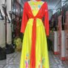 Bộ yếm váy múa dân gian đương đại màu xanh rêu là một ví dụ xuất sắc về sự kết hợp giữa truyền thống và hiện đại. Với chất liệu vải voan lụa mềm mại thước tha, sản phẩm này thể hiện sự tôn vinh đối với nền văn hóa dân gian. Họa tiết hoa màu sắc sặc sỡ trên áo yếm và váy tạo nên một hình ảnh sống động và cuốn hút. Váy đụp may bằng lưới lót vải phi bóng tạo ra một hiệu ứng lấp lánh khi nàng múa xoay đều đặn trong các bước nhảy nhanh nhẹn.