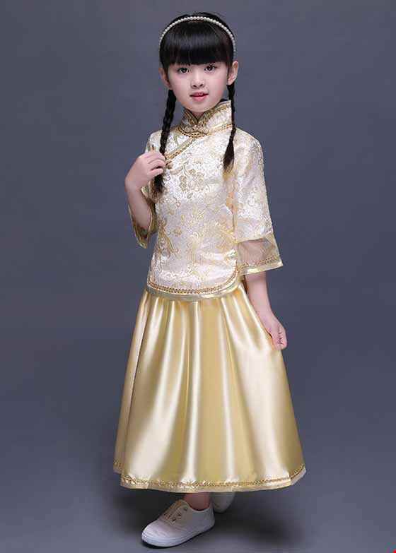 Sườn xám nữ mầm non gấm vàng