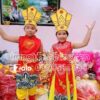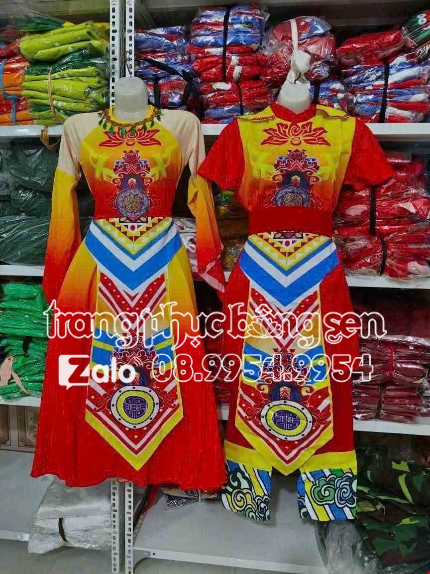 Trang phục Âu Lạc nam nữ múa hát sử ca, màu cam vàng