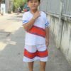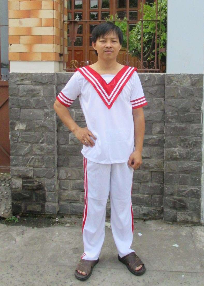 Trang phục cổ động nam áo trắng sọc đỏ