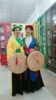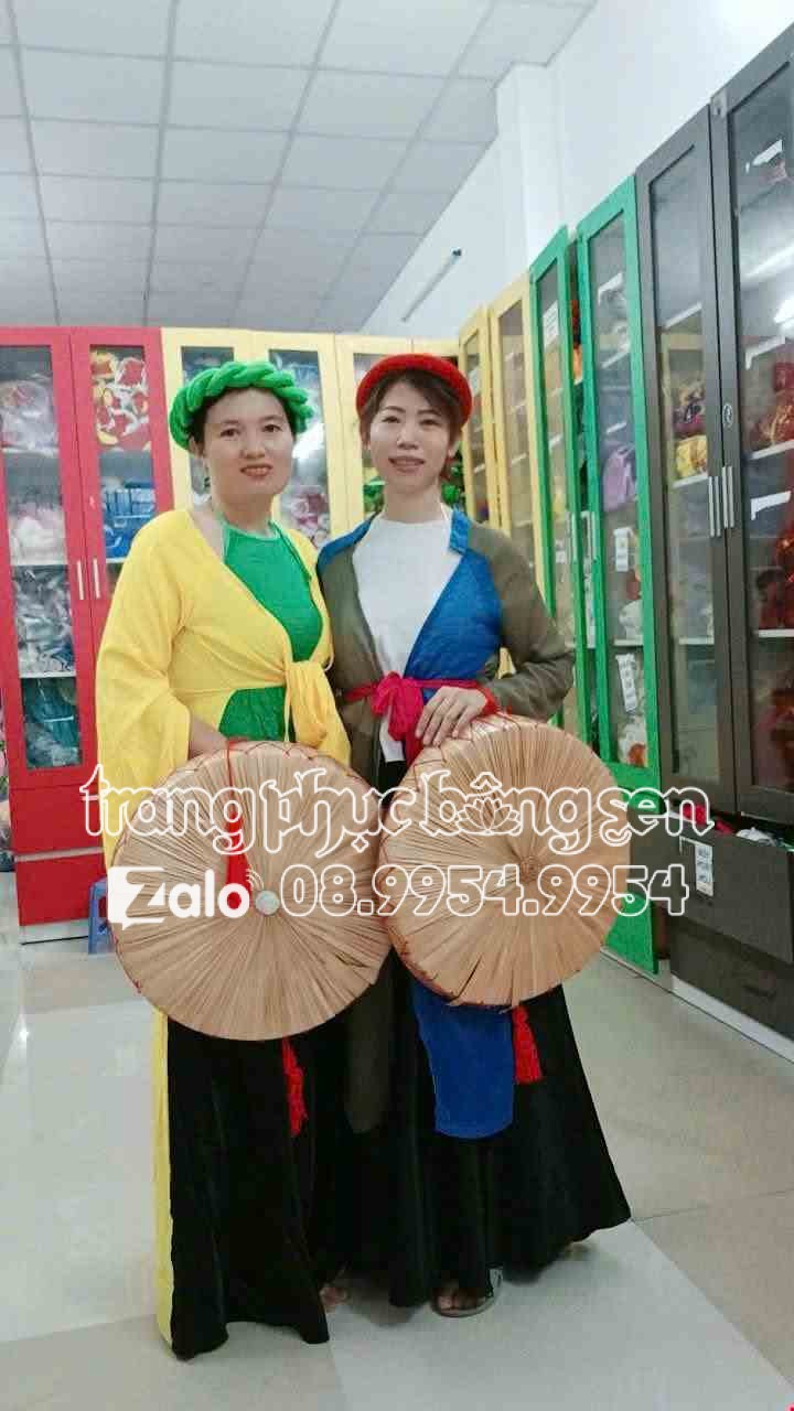 Bộ trang phục gồm yếm, váy, áo khoác tứ thân và vấn đội đầu.