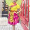 Bộ gồm áo, váy và nón đội đầu.